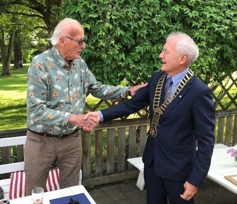 Ragnar Halle overrekkes utmerkelsen Paul Harris Fellow med diplom og medalje av president Trond-Gunnar Stenersen
